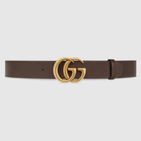 Evolving season after season, the GG Marmont's recognizable design blends the ‘70s GG hardware with contemporary styles. This GG Supreme canvas belt reverses to brown leather offering an alternative look. - Beige and ebony GG Supreme canvas, reverses to brown leather - Aged gold-toned hardware - Double G buckle - 1.5" width - Made in Italy - This belt is intended to be worn on the hips. Please refer to the style guide to find your size.