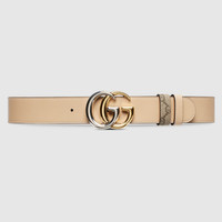 The GG Marmont line continues to be reinterpreted in new ways for the latest collections. Here, this reversible belt appears in beige and ebony GG Supreme on one side and in light pink leather on the other. A two-toned Double G hardware completes the style. - Beige and ebony GG Supreme on one side and light pink leather on the other - Two-toned Double G - 1.4" belt width - Made in Italy - Can be worn as a hip or waist belt. Sizing will differ based on where the belt is worn, please refer to the size guide to find your size.
