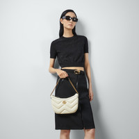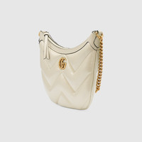 The GG Marmont is synonymous with its matelassé leather and monogram hardware. Crafted from white leather, the small shoulder bag is reimagined with small a Double G. - White matelassé chevron leather - Part of the - selection, this product is embedded with NFC technology—an innovative way to authenticate and experience your item digitally. - Microfiber lining with suede like finish - Double G - Inside: 1 open pocket - Shoulder strap drop: 9.2" - Zip closure - Small size: 10.2"W x 6.6"H x 1.5"D - Made in Italy
