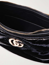 EDITORS'NOTES Gucci's 'GG Marmont' collection is defined by the house's archival interlocking logo plaque. Made in Italy from quilted patent-leather, this '2.0' style has enough space inside for your everyday essentials – think phone, cardholder and keys. SIZE & FIT This item’s measurements are: - Handle Drop: 22cm / 8.7in - Depth: 4cm / 1.6in - Height: 17cm / 6.7in - Width: 26cm / 10.2in DETAILS & CARE - Black patent-leather (Calf) - Chain and leather shoulder strap - Internal slip pocket - Suede lining - Zip fastening along top - Comes with dust bag - Weighs approximately 1.5lbs/ 0.7kg