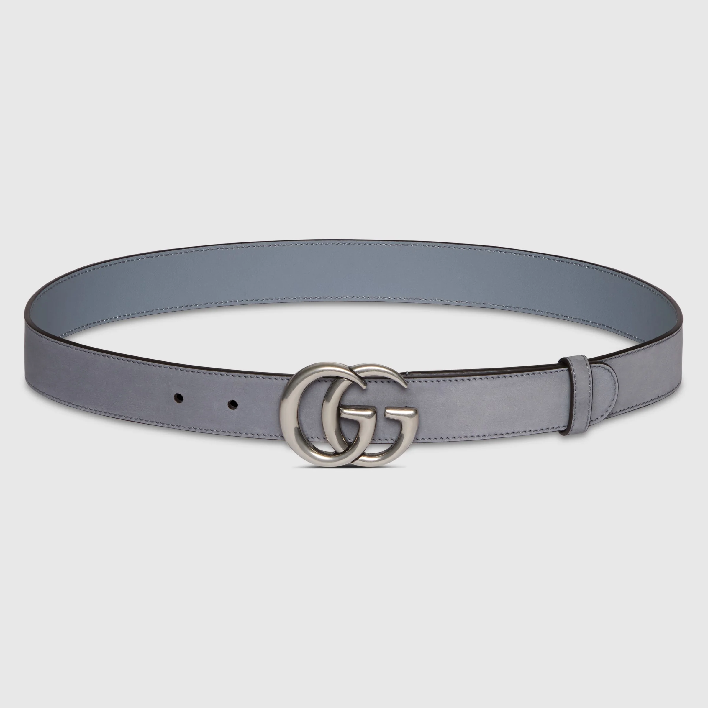 This everyday belt is presented as part of the Pre-Fall 2025 collection. Taking inspiration from the heritage of the House, it's crafted from suede and defined by a light gold-toned Double G buckle. - Grey suede - Silver-toned hardware - Double G buckle - 1.2" width - Made in Italy - Can be worn as a hip or waist belt. Sizing will differ based on where the belt is worn, please refer to the size guide to find your size.