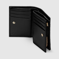 The Double G hardware appears in petite dimensions on this GG Marmont wallet as a subtle logo. Classic colors add an iconic touch to signature leathergood pieces, like this one in black matelasse chevron leather. - Black matelasse chevron leather - Gold-toned hardware - Moire lining - Double G - Inside: 8 card slots, 1 bill compartment - 1 zip compartment - Snap button closure - Weight: 0.29lbs approximately - 4.3"W x 3.1"H x 1.2"D - Made in Italy