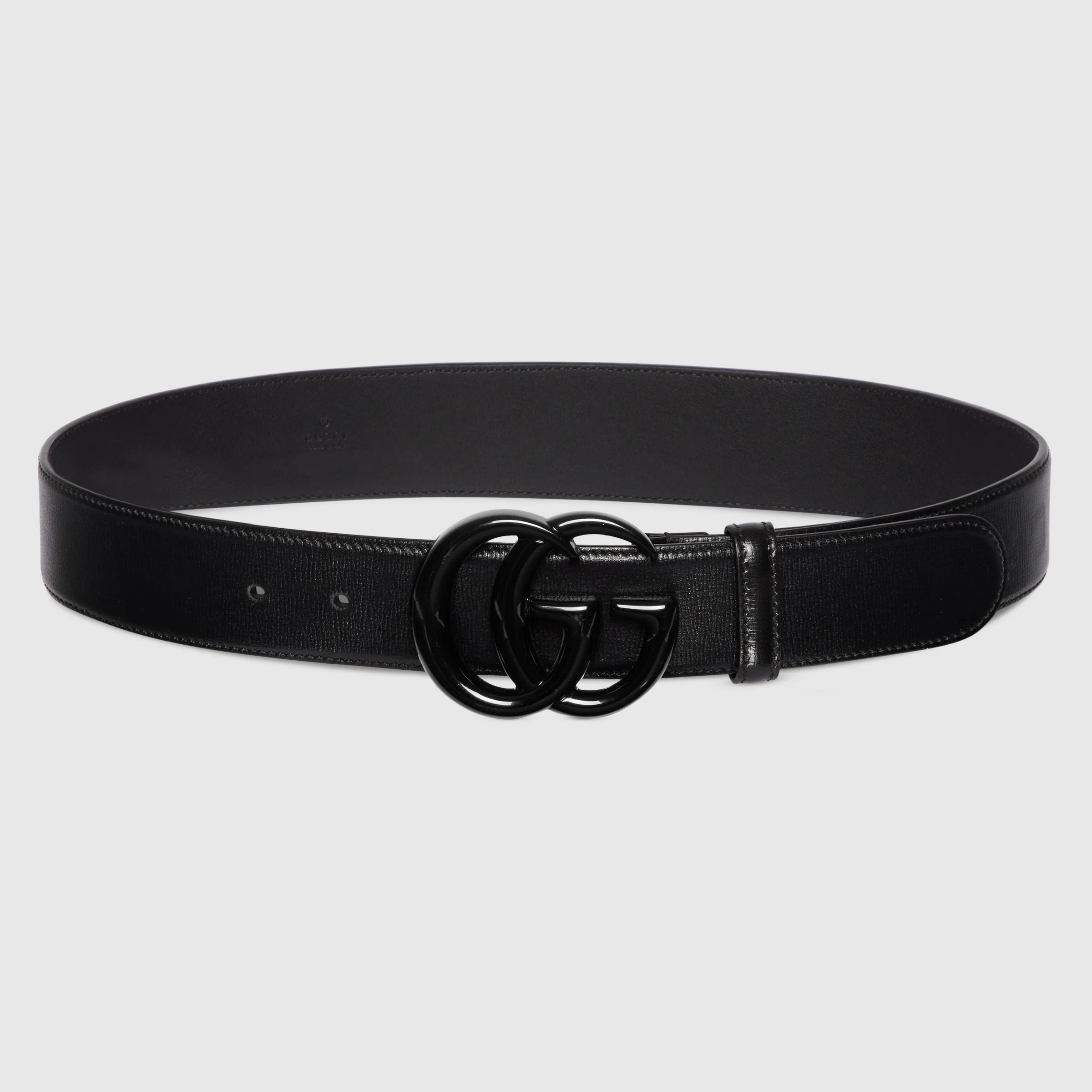 Reminiscent of the GG Marmont handbag, this wide belt is characterized by the Double G. Inspired by a buckle from the '70s archives, the gold-toned hardware is imagined each season in new ways, playing with the concept of timelessness. - Black leather - Black brass hardware with ceramic effect finishing - Double G buckle - Buckle: 3"W x 2.4"H - 1.5" belt width - Made in Italy - Can be worn as a hip or waist belt. Sizing will differ based on where the belt is worn, please refer to the size guide to find your size.