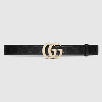 Envisioned by the Creative Director Sabato De Sarno, the new GG Milano line pays tribute to the vibrant city of Milan. Reminiscent of established House icons and emblematic hardware, the GG Milano line includes a selection of handbags and belts, featuring the same hardware. Defined by a new Double G buckle, this belt is crafted from a black GG embossed leather with a soft and silky touch. - Black GG leather - Light gold-toned hardware - Double G - 1.2" width - Can be worn as a waist belt. Sizing will differ based on where the belt is worn, please refer to the size guide to find your size.