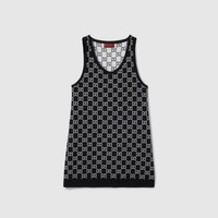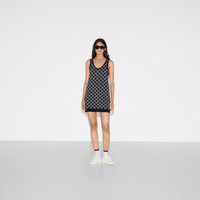 Taking inspiration from founder Guccio Gucci's monogram, the GG motif continues to be a firm favorite of the House. This mini dress is presented in a fine wool tubular GG jacquard stitch and completed with a contrasting rib trim. - Black and white reversible fine wool tubular GG jacquard stitch - Scoop neck - Sleeveless - Rib trim - Shoulder drop: 11.2 " based on a size XS (IT) - Mini - Length: 32.7"; Shoulder: 11.8" based on a size s - Made in Italy - The model is 5'9" and is wearing size extra small