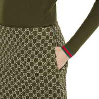 Coats, jackets, and dresses blend discreet elegance with refined details in the Pre-Fall 2025 collection. This mini skirt is crafted from a GG cotton boucle with a bon-ton feel, while the green shade echoes the current color narrative. - White and forest green GG cotton boucle - Lined - Side zip closure - Mini - Made in Italy