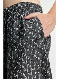 GG-print silk twill shorts Highlights - Grey/white - Silk - Classic gg canvas - Elasticated waistband - Two side inset pockets - Knee-length - Full lining Made in Italy Composition Outer: Silk 100% Lining: Viscose 100% Washing instructions Read Manufacturer Guidelines