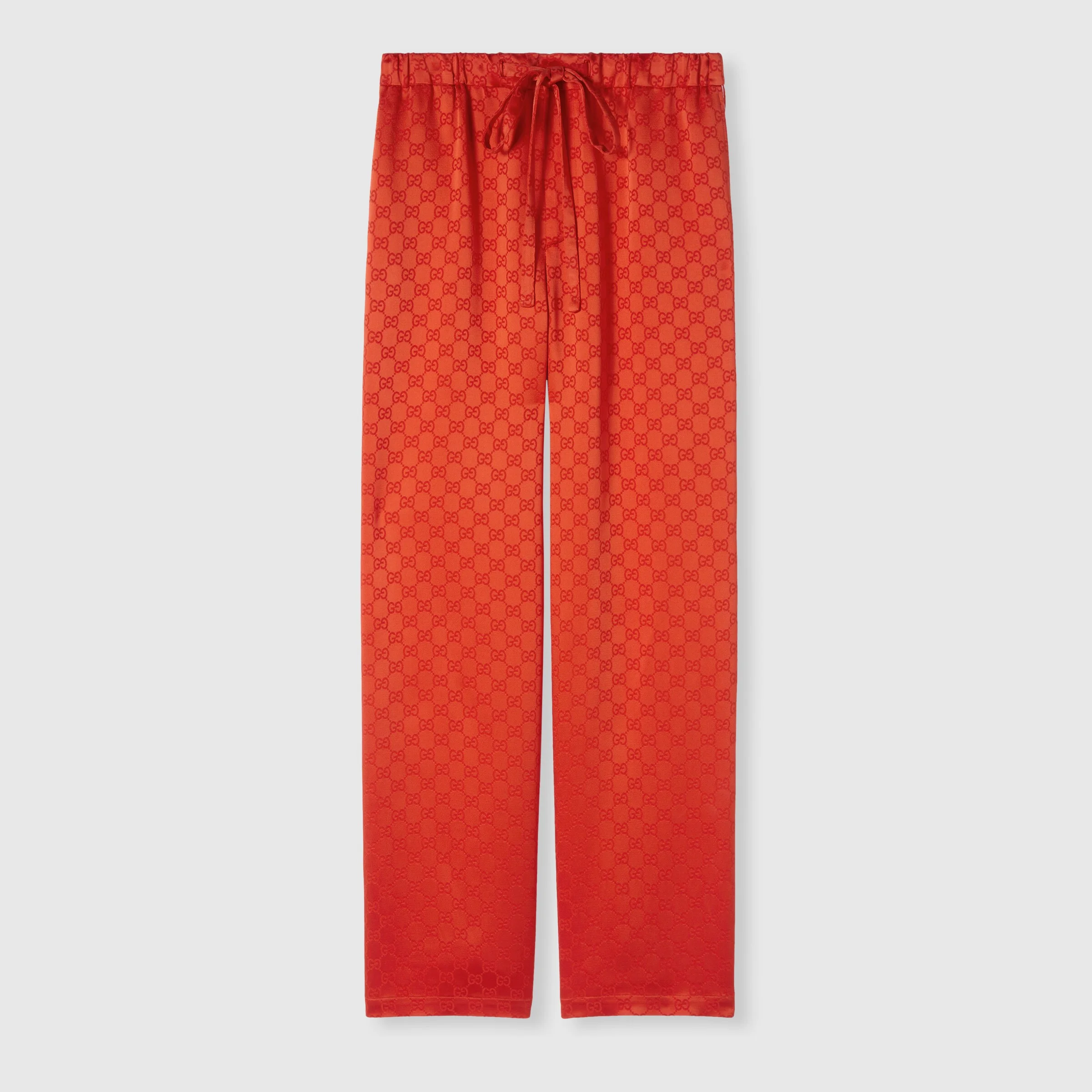 For the Pre-fall 2025 collection, colorful tops and dresses infuse ready-to-wear with a vibrant twist for the transitional wardrobe. This pair of pants in a bright orange are crafted from a delicate GG satin. - Bright orange GG satin - White piping trim - Unlined - Elastic waist with drawstring - Button closure - Made in Italy