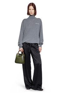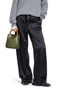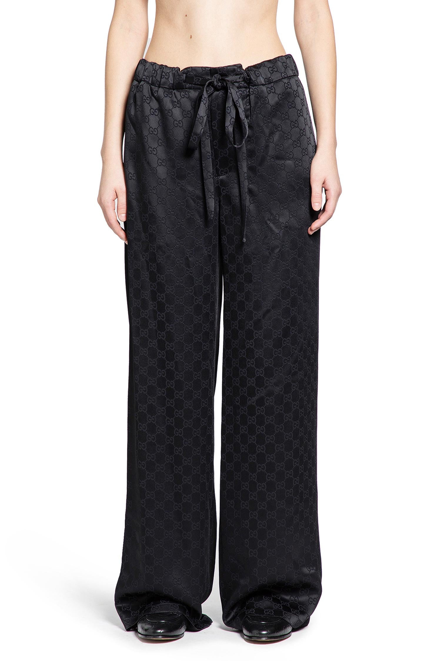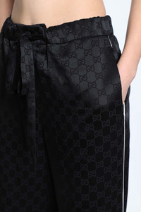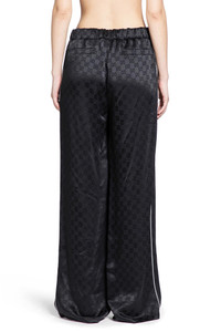 DESCRIPTION - Black - Gg satin - Elastic waistband with drawstrings - Button closure - Side pockets - Piping leg trim - Unlined - Wide leg - Relaxed fit DETAILS - Made in: Italy - Composition: 55% Viscose 45% Polyester - Model code: 836395Z7ADF 1043 - Item ID: 9768000586070