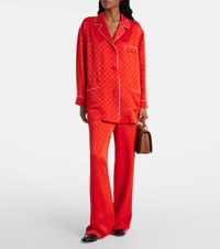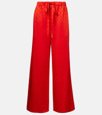 Crafted in Italy by Gucci from delicate GG satin, these bright orange wide-leg pants feature an elastic drawstring waist for comfort. Finished with a button closure, they combine bold color with relaxed elegance. Product Details - Material: 55% viscose, 45% acetate - Care instructions: dry clean - Made in Italy - Designer color name: vibrant Orange/Mix - Item color: orange - Pocket lining: 75% acetate, 25% silk - Trim: 60% acetate, 30% silk, 10% viscose - Closure: zipper fly, button fastening - Contains non-textile parts of animal origin - Elasticated drawstring waist - Pockets: side slit pockets, back pockets - Item number: P01052866 Size & Fit - Fits large to size - we recommend trying one size smaller - Adjustable at the waist - Non-stretchy fabric - Wide-leg - Sits low on the hips - The model seen in the picture is 178cm-5'10" and wearing a size IT 38