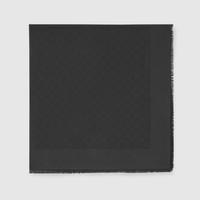 Established symbols and patterns of Gucci's heritage continue to evolve for the Pre-Fall 2024 collection. This shawl appears in black GG cotton silk jacquard. - Black GG cotton silk jacquard - Fringe trim - 49.2"W x 49.2"L - Made in Italy