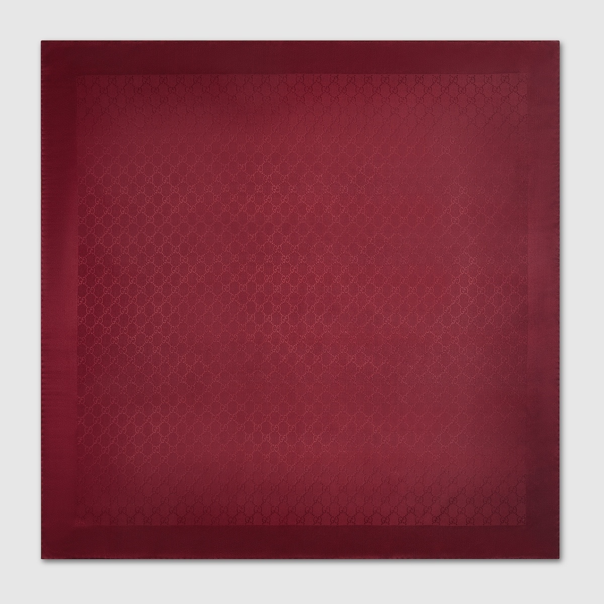 In the Spring Summer 2025 collection, women's silk accessories introduce gradient colors. From soft to solid, the shade brings out the natural texture of the material on this carre. - Gradient bordeaux GG silk jacquard - 35.4"W x 35.4"H - Made in Italy - The dimensions of this item may vary slightly as the hem is hand-sewn