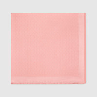 The House's silk accessories collection continues to reinterpret emblematic motifs, from the GG, Web, Flora, bamboo, Horsebit and equestrian inspirations, in sumptuous materials, intricate craftsmanship, and fresh hues. Crafted from a GG silk wool, this soft shawl has been finished with a delicate fringe trim. - Pink and white GG silk wool - Fringe trim - 51.1"W x 51.1"L - Main fabric: silk 60%, wool 40%