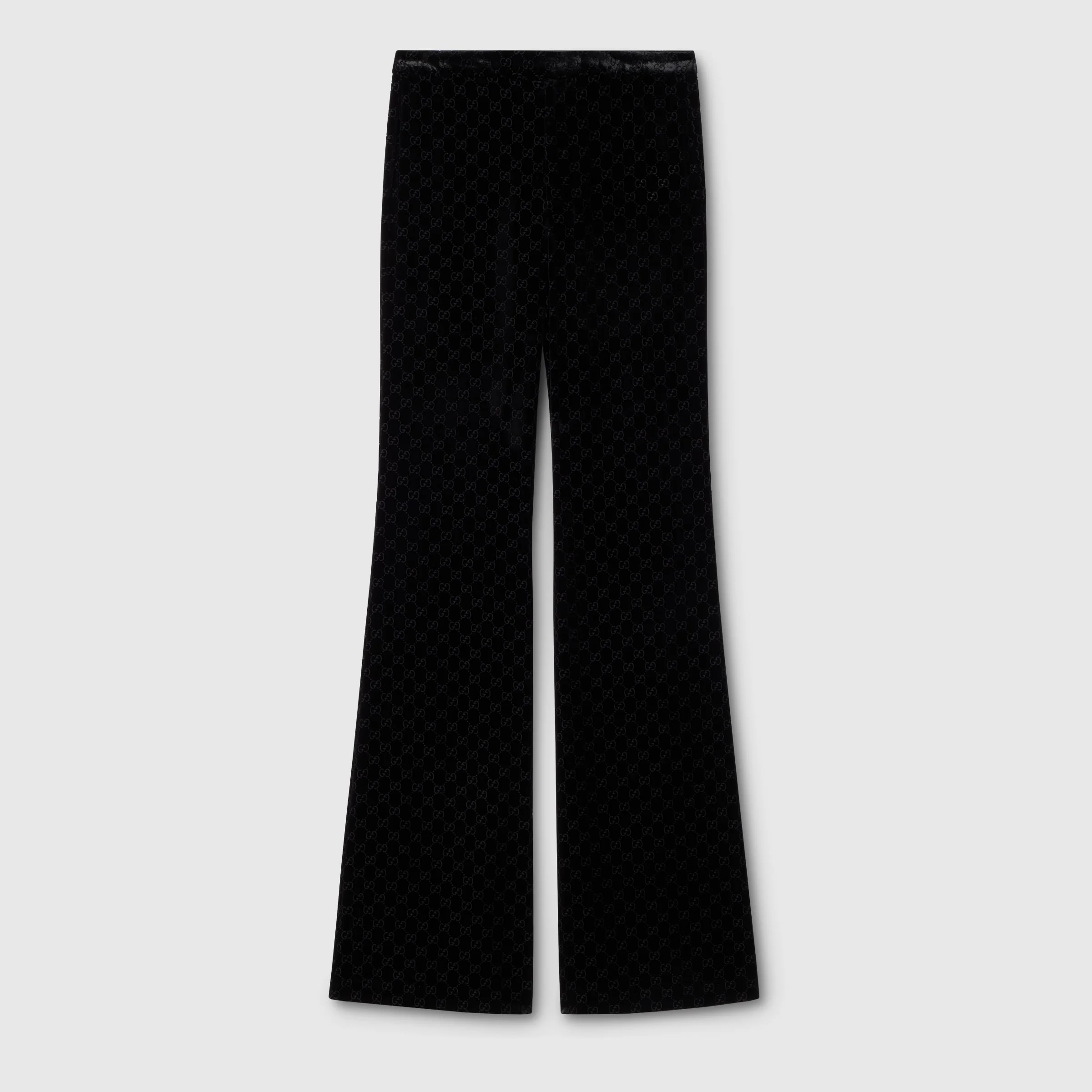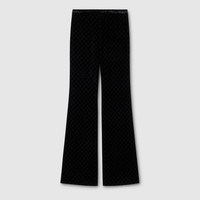 Introducing Spring Summer 2026. This style is inspired by the "La Sciura" look of La Famiglia. The collection reinterprets the House’s codes through singular personalities and distinctive aesthetic attitudes. These pants are presented in GG stretch devore velvet. - Black GG stretch devore velvet - Unlined - Length: 46.7"; Leg opening: 23.8", based on a size 38(IT) - Made in Italy - Fabric: 72% Viscose, 24% Silk, 4% Elastane