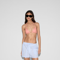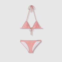 This halterneck bikini appears as part of the Cruise 2025 collection. Crafted from a GG stretch jersey, it's enriched with lace ties an Interlocking G detail. - Light pink GG stretch jersey - Interlocking G detail - Please note that intimates, including swimwear, tights, socks and lingerie can only be returned in new condition. Items should be unworn, in their original packaging and with all labels attached. - Laces that tie at the back and at the neck - Made in Italy - The product shown in this image is a size extra small