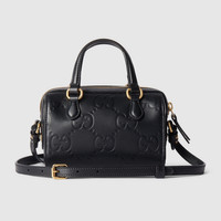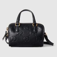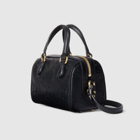 The House's most emblematic motifs are portrayed as timeless yet ever-evolving symbols throughout the Pre-Fall collection. The iconic GG leather defines this top handle bag with its unmistakable touch in a refined black hue. - Black GG leather - Cotton linen lining - Top handles with 3.1" drop - Detachable shoulder strap with 22.4" drop; length: 47.2"-51.2" - Zip closure - Weight: 0.70lbs approximately - Super mini: 6.3"W x 4.3"H x 3.5"D - Made in Italy - Fits up to: iPhone Pro/Pro Max, Airpods, wallet, and lipstick