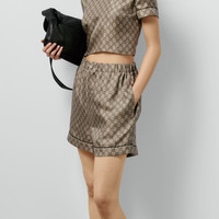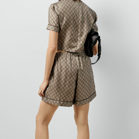 Essential pieces in the Cruise 2024 collection are embellished with signature Gucci motifs for the wardrobe. This pair of shorts is presented in GG Supreme printed silk with a tonal piped trim, speaking volumes about stylish comfort. - GG Supreme print beige and ebony silk twill - Piped trim - Covered buttons - Unlined - Regular waist - Elastic waistband - Wide leg - Button and zip closure - Length: 15.7" based on a size small - Leg opening: 27.5" based on a size small - Made in Italy - The product shown in this image is a size small