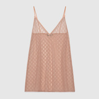 Diaphanous ready-to-wear pieces with lingerie inspired details walked the Cruise 2020 runway, immersed among Rome’s Capitoline Museums. Crafted from embroidered GG tulle in pale pink, this lingerie dress plays with soft shades and speaks to the spirit of freedom and self-determination woven through the collection’s looks. - Pale pink GG embroidered tulle - This item is accompanied by a dedicated packaging featuring the name of the House and an ornate gold pattern that recalls vintage dressing tables. - Thin straps - Made in Italy - The product shown in this image is a size medium