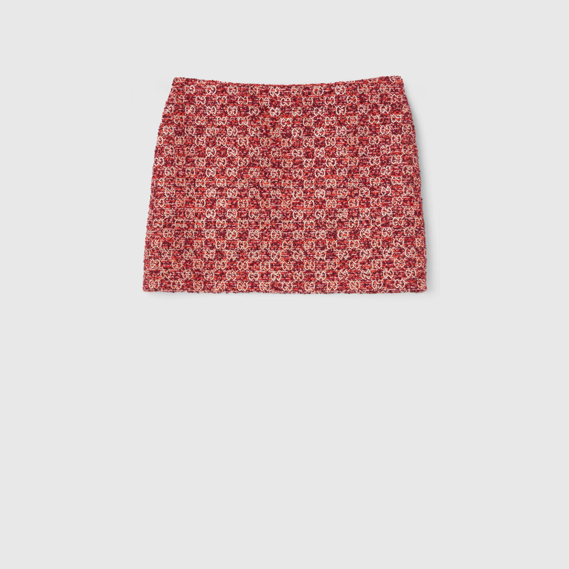 The Cruise 2026 women's ready-to-wear collection highlights sumptuous materials on essential silhouettes to usher in the festive season. This mini skirt is crafted from GG tweed. - Orange and red GG tweed - Lined - Belt loops - Two side pockets - Length: 13.7"