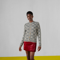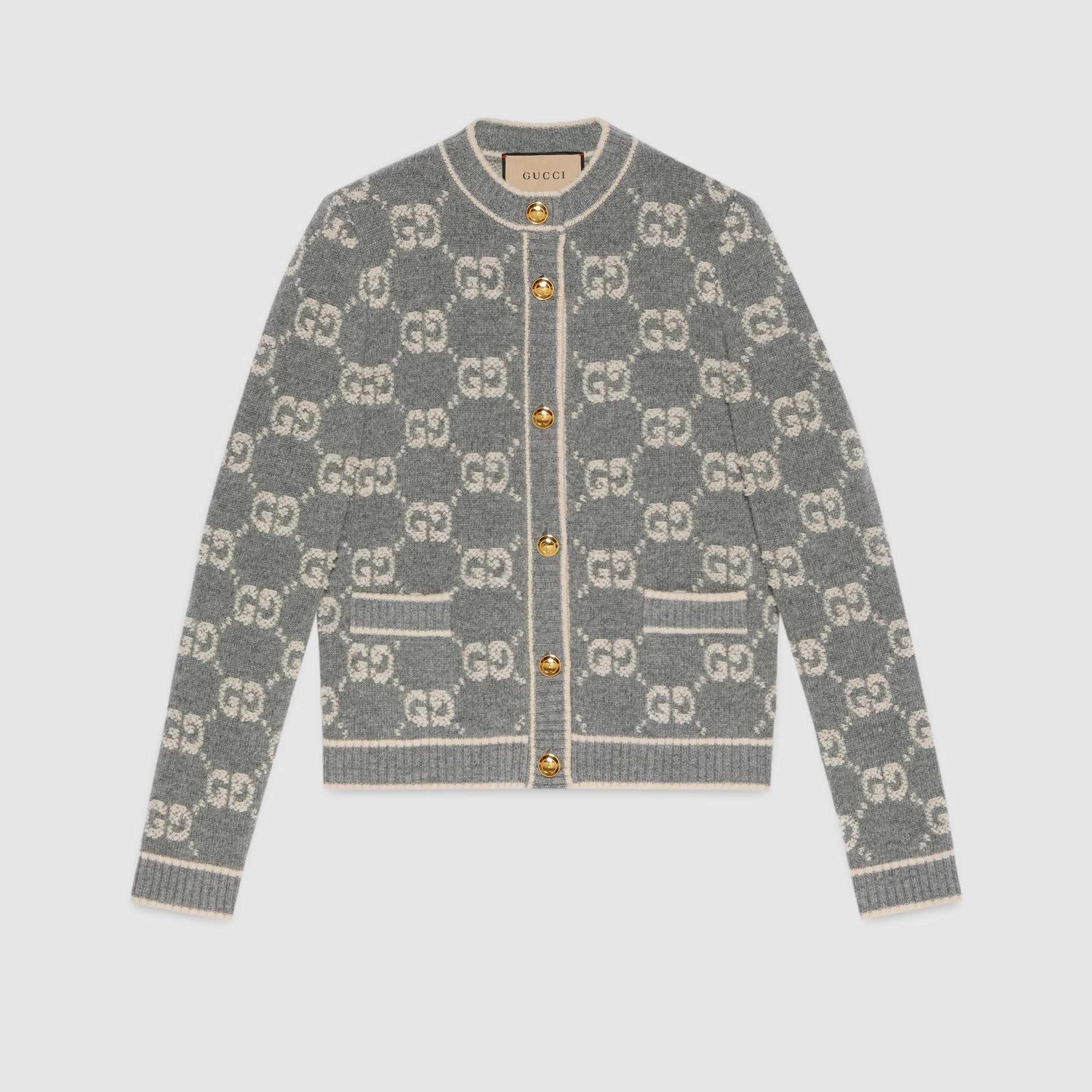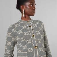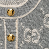 The GG motif returns in new iterations – including lamé offerings, bouclé intricate tweeds in refined materials and sequin embellishments. Part of the selection, this cardigan is crafted from GG wool bouclé jacquard and enriched with Retro GG resin buttons. - Grey and ivory GG bouclé wool jacquard - Retro GG resin buttons - Crewneck - Long sleeves - Two front pockets - Rib trim - Sleeve Length: 24,8" - Button closure - Length: 21,2" based on a size S - Made in Italy - The product shown in this image is a size small - Hem Width: 17,3"
