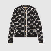 The GG motif returns in new iterations, including lamé offerings, bouclé intricate tweeds in refined materials and sequin embellishments. Part of the selection, this cardigan is crafted from GG wool bouclé jacquard. - Black and ivory GG wool bouclé jacquard - Gold-toned vintage Interlocking G buttons - Crewneck - Long sleeves - Two front pockets - Rib trim - Button closure - Length: 21.6" based on a size small - Made in Italy - The product shown in this image is a size small