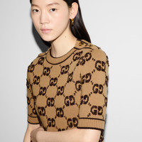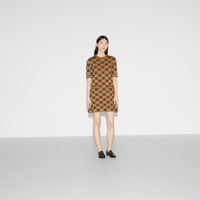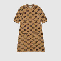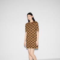 The GG motif returns in new iterations – including lamé offerings, bouclé intricate tweeds in refined materials and sequin embellishments. Part of the selection, this dress is crafted from GG wool bouclé jacquard. - Camel and brown GG wool bouclé jacquard - Gold-toned vintage Interlocking G buttons - Crewneck - Short sleeves - Two front pockets - Rib trim - Button opening at shoulder - Length: 34.6" based on a size small - Made in Italy - The model is 5'8" and is wearing size small