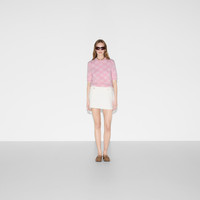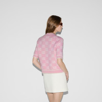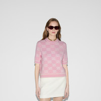 Taking inspiration from founder Guccio Gucci's monogram, the GG motif continues to be a firm favorite of the House. This crewneck top is stated in soft wool GG boucle stitch jacquard and completed with a contrast rib trim. - Light pink and white soft wool GG boucle stitch jacquard - Crewneck - Short sleeves - Rib trim - Shoulder drop: 13.7 " based on a size S (IT) - Sleeves Length: 10.6 " based on a size S (IT) - Length: 20.1"; Shoulder: 13.8"; Half waist/chest: 18.5"; Sleeves length: 10.6" based on a size s - Made in Italy - The product shown in this image is a size small - Hem Width: 45cm
