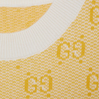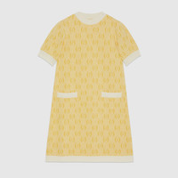 From horses and medallions to the Gucci script, all-over motifs on dresses, pajamas, and signature pieces emphasize visual contrast. Part of the selection, this dress features the historical GG motif in a delicate yellow colorway. - Yellow GG knit wool jacquard - Rib trim - Crewneck - Short sleeves - Two front pockets - Length: 35", based on a size small - Made in Italy - The product shown in this image is a size small