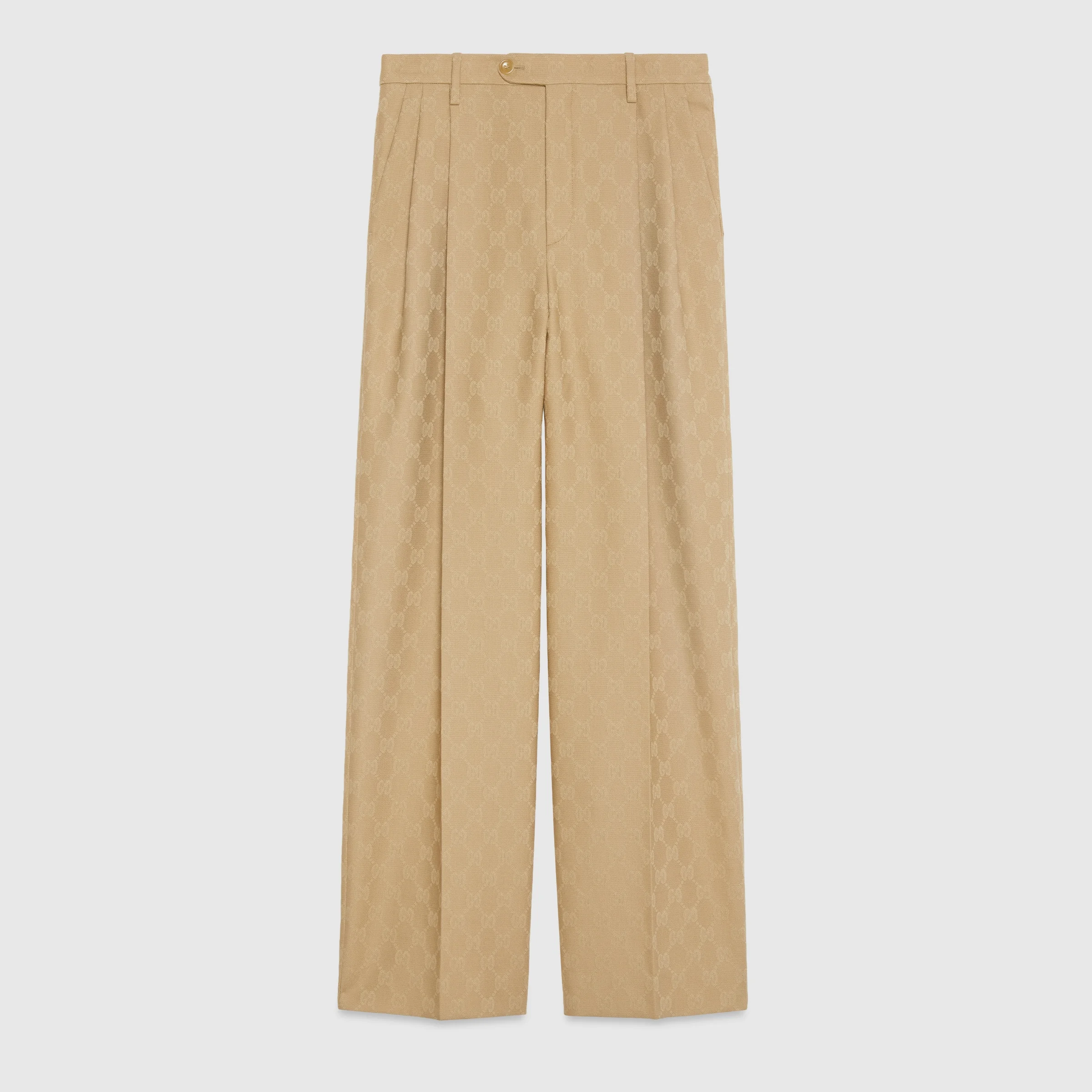 First used in the 1970s, the GG logo was an evolution of the original Gucci rhombi design from the 1930s, and from then it's been an established symbol of Gucci's heritage. Crafted from soft GG wool, these straight leg pants explore fresh interpretations of the House's historical monogram. - Camel GG wool jacquard - Belt loops - Front pleats - Side pockets - Straight leg - Button and zip closure - Length: 42.5" based on a size 40 (IT) - Leg opening: 21.2" based on a size 40 (IT) - Made in Italy - The product shown in this image is a size 40 (IT)