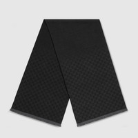 In the Fall Winter 2025 collection, this signature GG motif returns in soft shades. Here it's presented across this wool scarf, complete with a fringe trim. - Black and grey GG wool jacquard - Fringe trim - 17.7"W x 72.8"L