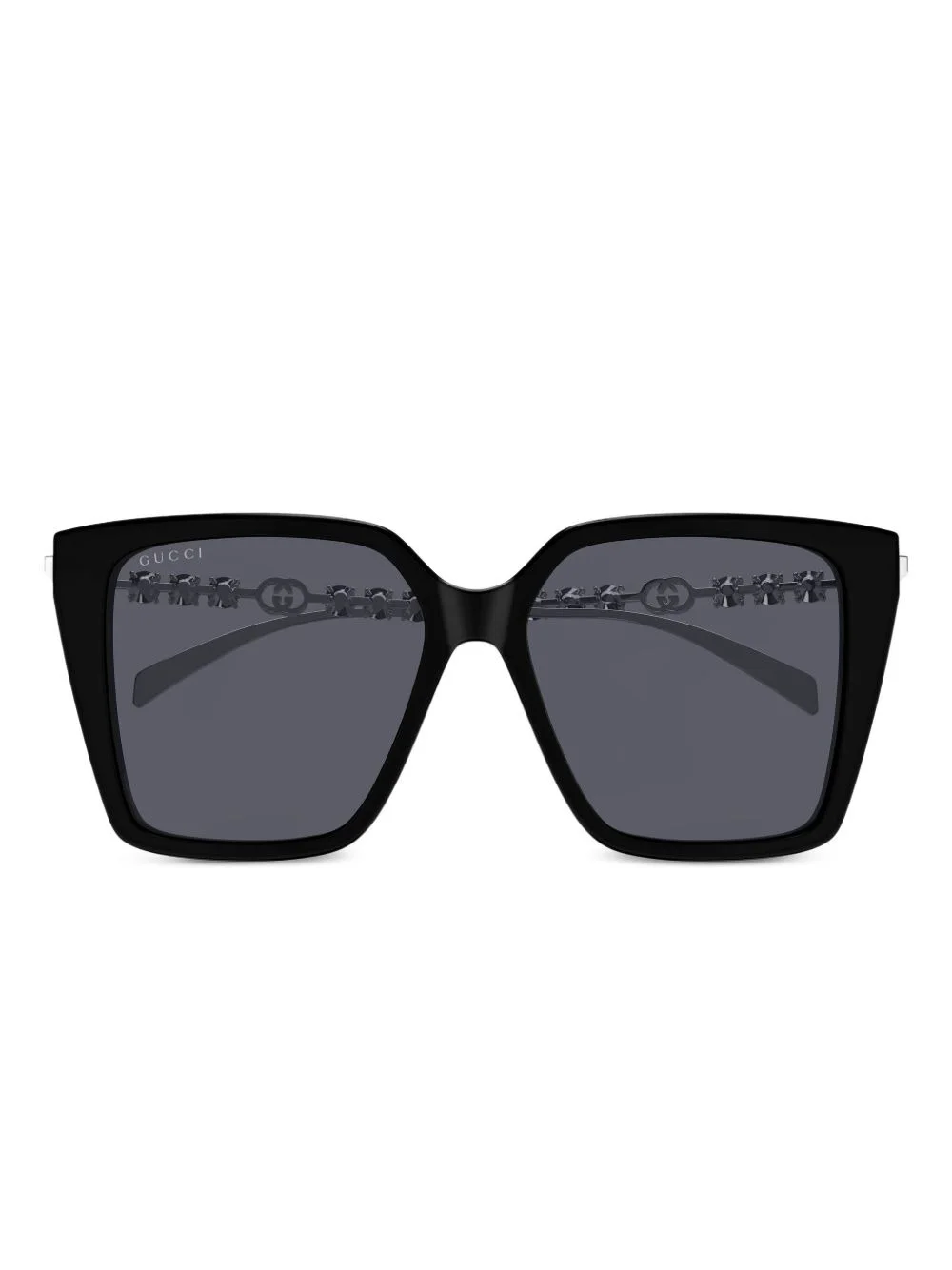 crystal-embellished sunglasses Highlights - Black - Oversize frame - Interlocking g logo plaque - Curved tips - These glasses come with a protective case. Made in Italy Composition Acetate 100%, Metal 100%