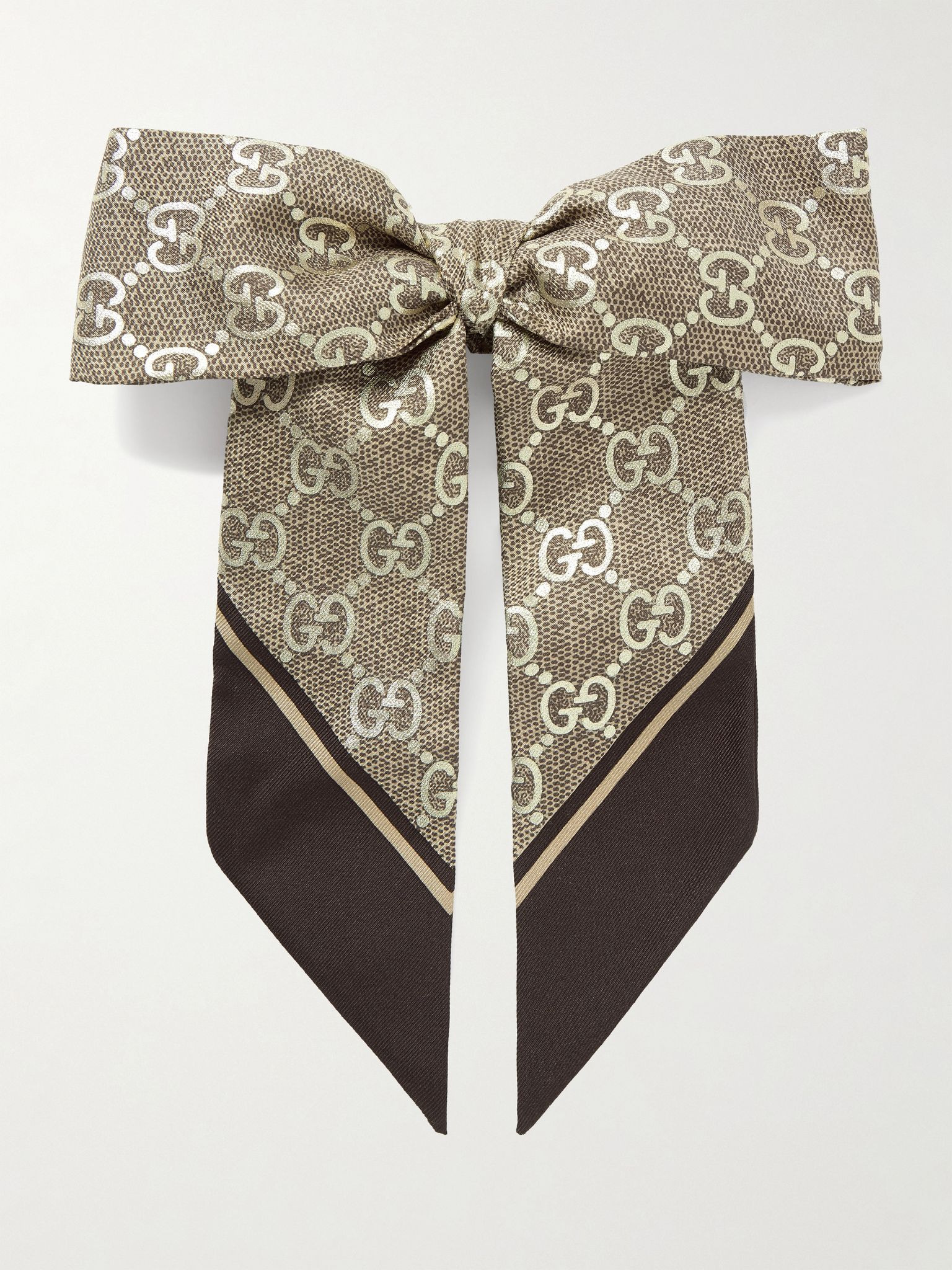 Bow-embellished printed silk-twill hair tie Beige