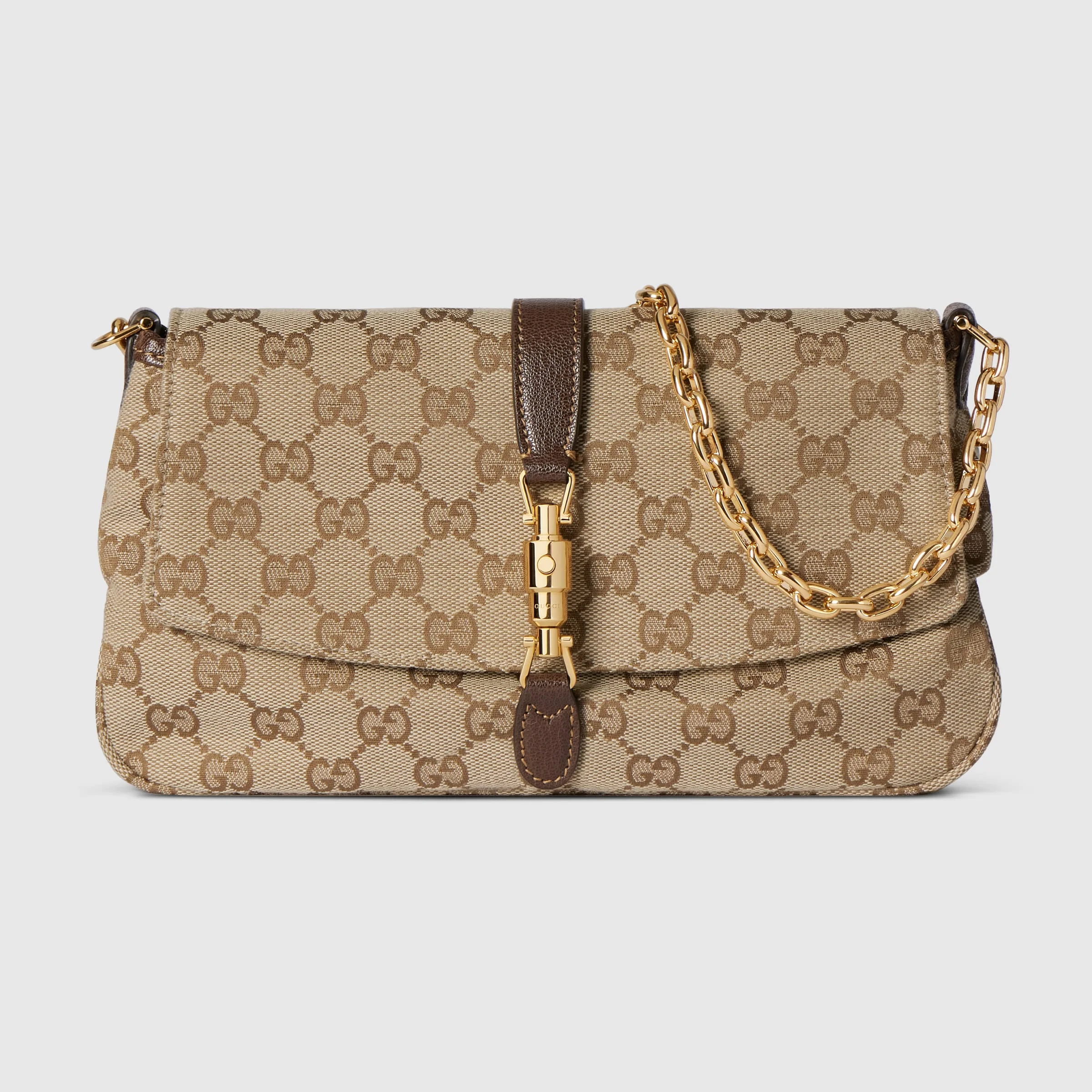 Introducing Spring Summer 2026. The evening bag is inspired by the Italian tradition of going out for pre-dinner drinks, and by moments when all one needs are the essentials. Crafted from lightweight yet structured GG canvas in the vintage-inspired shade of sand, it has a beautiful chain and can be worn crossbody with the additional strap. - Sand and dark brown GG canvas - Dark brown soft leather trim - Gold-toned hardware - Sand canvas lining with Diamante motif - Inside: 1 zip pocket - Detachable and adjustable leather strap drop: 16.1" - 20.1"; length: 33.9" - 46.1" - Chain strap drop: 18.1"; length: 15.3" - Piston closure - 10.2"W x 5.7"H x 1.4"D - Weight: 0.7lbs approximately - Fits iPhone Pro Max/Plus, Airpods, small wallet, and lipstick