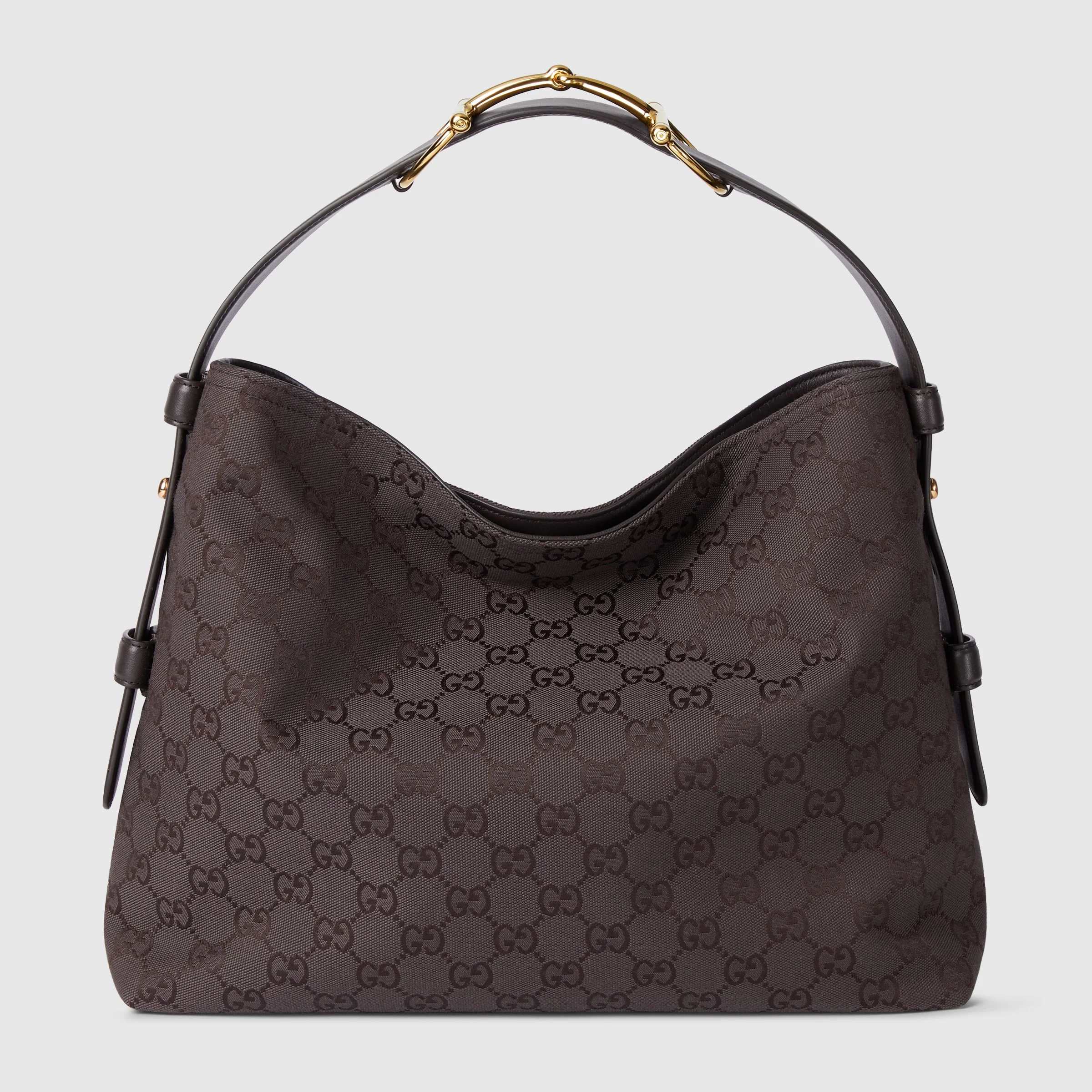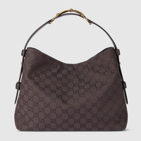 In the Fall Winter 2025 collection, the Gucci Beatrix handbag features a relaxed silhouette elevated by the signature Horsebit detail on the shoulder strap. The gold-toned hardware enhance its refined feel, while a zip pocket inside keeps essentials secure. Elegant yet functional, it's designed to carry your everyday must-haves with ease. - Brown and dark brown GG canvas - Gold-toned hardware - Beige cotton linen lining - Horsebit detail on the shoulder strap - Inside: zip pocket - Shoulder strap: 8.3" drop; 33.5" length - W13.8" x H10.8" x D4.3" - Weight: approximately 1.54lbs - Made in Italy - Fits iPhone Pro Max/Plus, Airpods, long wallet, and lipstick