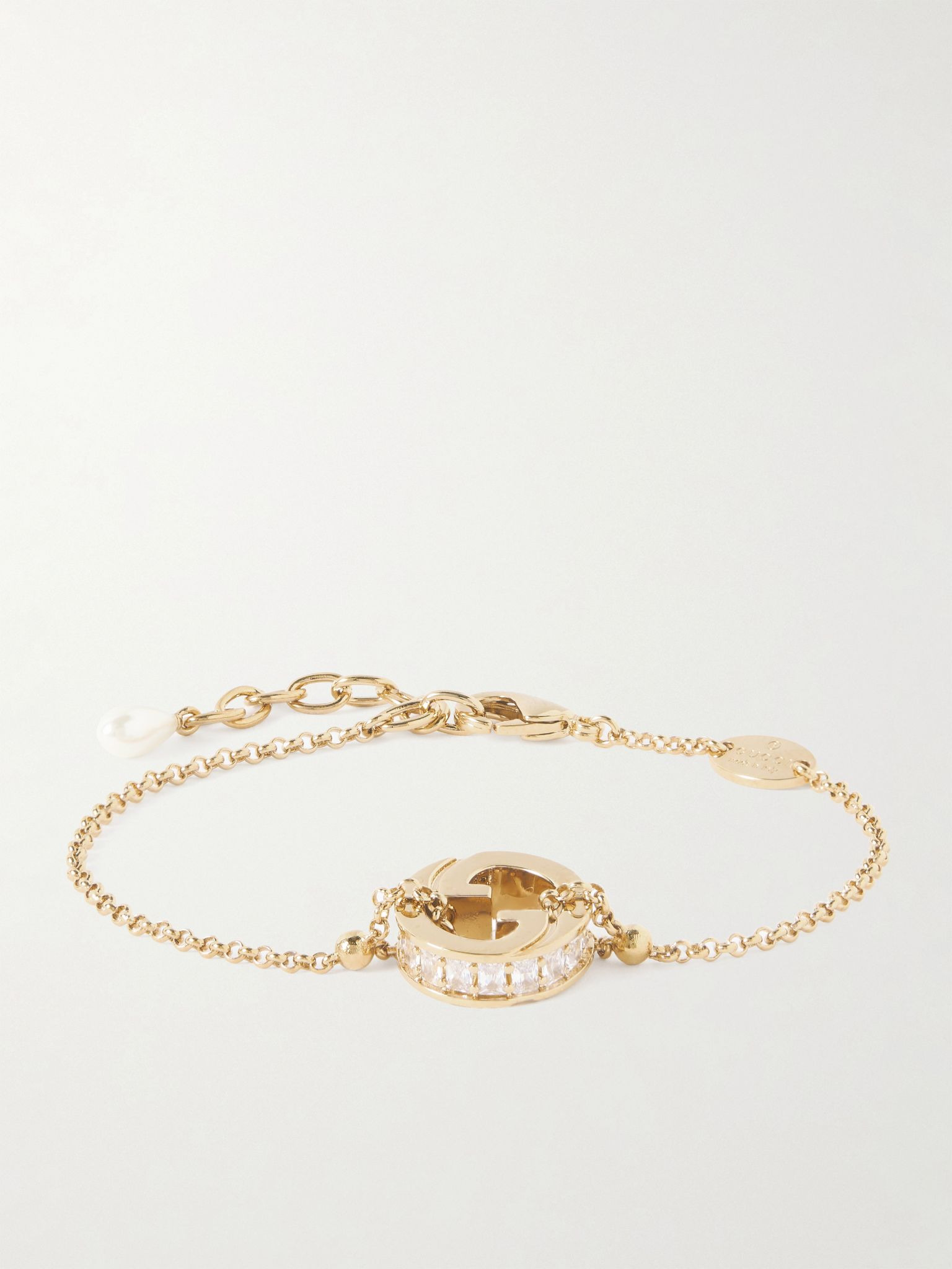 Gucci's bracelet features the signature 'GG' logo that defines the 'Blondie' range. Made from gold-tone metal, it's traced with shimmering crystals and has a slim chain you can adjust between lengths. Details & Care - Lobster clasp fastening