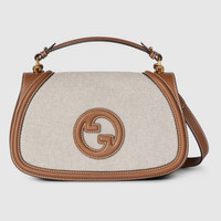 The new Gucci Blondie bag, whose distinctive logo first appeared in the House’s collections in the early 1970s, weaves together past and present in a fusion of nostalgia and modernity. This medium top handle bag with a detachable and adjustable leather shoulder strap is crafted from natural canvas. - Natural cotton linen canvas - Brown leather trim - Brown cotton linen lining - Round Interlocking G - Inside: 1 zip pocket - Outside: 1 back open pocket - Top handle with 2.7" drop - Detachable and adjustable leather shoulder strap with 18.5" - 20.8" drop; length: 37.7"- 42.5" - Magnetic closure - Medium: 12.5"W x 6.6"H x 3.9"D - Weight: 1.9lbs, approximately - Made in Italy - Fits iPhone Pro Max/Plus, Airpods, long wallet and lipstick