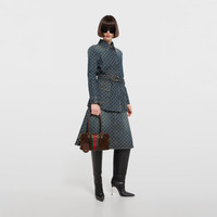 Introducing Spring Summer 2026. Gucci Borsetto is a wordplay that merges "borsa" (bag in Italian) and "morsetto" (Horsebit). The style is crafted from soft suede, and reveals a new lining with Diamante motif taken from the archive. - Dark brown suede - Dark brown soft leather trim - Gold-toned hardware - Dark brown canvas lining with Diamante motif - Horsebit, Web, and leather tag with "Made in Italy by Gucci" logo - Handle drop: 7.9" - Detachable and adjustable leather strap drop: 17.3" - 19.7"; length: 39.4" - 45.3" - Double zip closure - 11"W x 5.9"H x 3.9"D - Weight: 1.1lbs approximately - Made in Italy