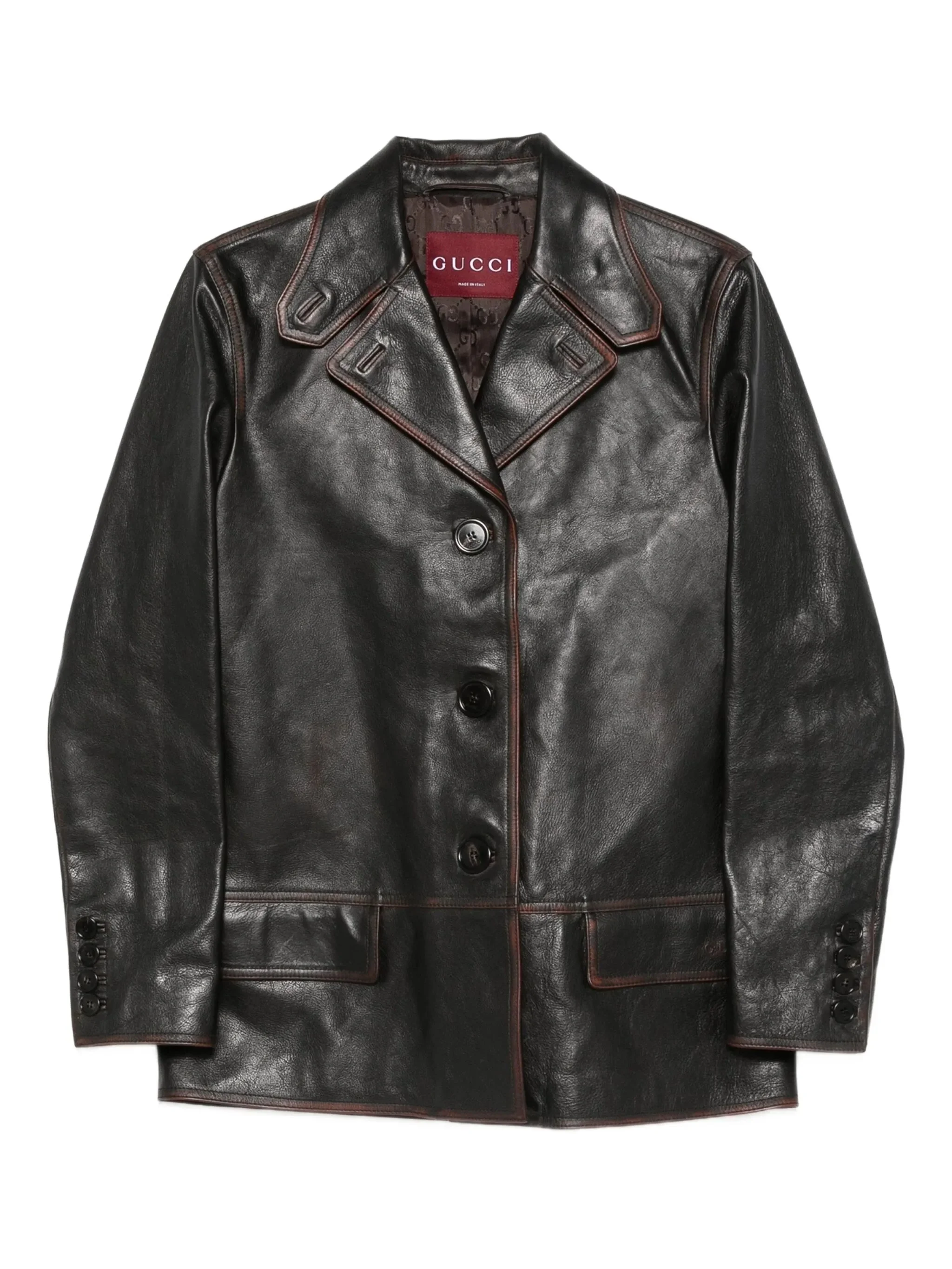 black button fastening front pockets long sleeves notched lapels contrast trim - Color: BLACK/BROWN - Made in: Italy - Designer Style ID: 838397 XNBAZ 1080 Composition and care Leather: 100.0%