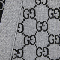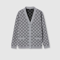 The GG motif appears in unexpected colors and fabric combinations, from linen blend to nylon. This reversible V-neck cardigan has been crafted from a GG fine wool jacquard, revealing an inverse color palette on the other side. - Grey and black extra fine GG wool jacquard on one side - Black and grey extra fine GG wool jacquard on the other side - V-neck - Dropped shoulder - Long sleeves - Two front pockets - Contrast rib trim - Shoulder drop: 16.1 " based on a size S (IT) - Sleeves Length: 24.0 " based on a size S (IT) - Button closure - Regular fit - Length: 26"; Shoulder: 16.1"; Half waist/chest: 19.3"; Sleeves length: 24" based on a size s - Made in Italy - Fabric: 96% Wool, 3% Polyamide, 1% Elastane - Trimming: 100% Wool