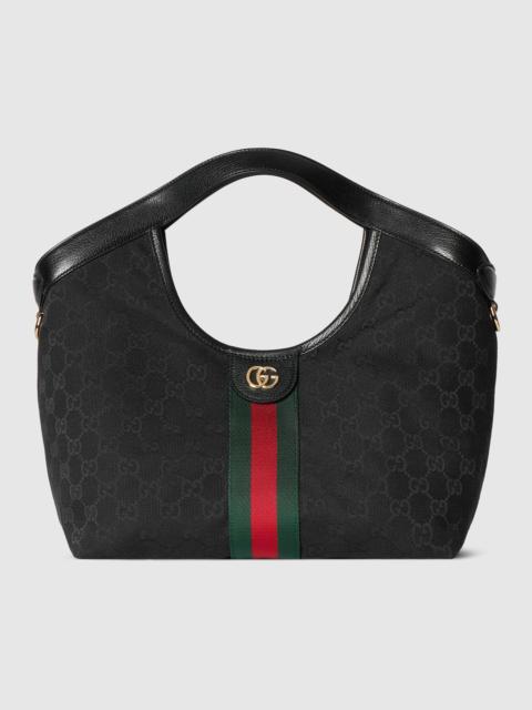 Introducing Spring Summer 2026. Further elevated with leather trim top handles, Gucci Giglio is a tribute to the House’s Italian roots, and the spirit of continuity and reinvention. Crafted from new coated GG fabric with a soft texture and shiny appearance, the style reveals a new lining with Diamante motif taken from the archive. - Sand and dark brown soft, shiny coated GG fabric - Dark brown soft leather trim, green and red Web canvas trim - Gold-toned hardware - Sand canvas lining with Diamante motif - Double G - Detachable pouch - Outside: D-rings - 5.9" handle drop - Detachable and adjustable leather shoulder strap drop: 21.3" – 24.8"; length: 43.3" – 50.8" - Hidden magnetic closure - 9.8"W x 7.9"H x 5.9"D - Weight: 1.1lbs approximately - Made in Italy - Fits an iPad, iPhone, Airpods and small items