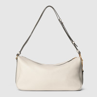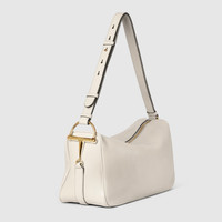 Gucci Half Horsebit offers a contemporary take on one of the House’s most emblematic codes. The style is defined by its relaxed silhouette and half of the signature hardware which has inspired the name. - Ivory soft grainy leather - Gold-toned hardware - White cotton linen lining - Half Horsebit - Inside: 1 open pocket - Adjustable leather strap drop: 13" - 15" - Zip closure - 15"W x 7.9"H x 5.9"D - Weight: 2.1lbs approximately - Fits an iPad, iPhone, Airpods and small items