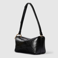 Gucci Half Horsebit offers a contemporary take on one of the House’s most emblematic codes. The style is defined by its relaxed silhouette and half of the signature hardware which has inspired the name. - Black soft glossy leather - Gold-toned hardware - Black cotton linen lining - Half Horsebit - Inside: 1 open pocket - Adjustable leather shoulder strap drop 12.6" - 13.4"; length: 26" - 28.7" - Zip closure - 12.4"W x 6.7"H x 4.7"D - Weight: 1.5lbs approximately - Fits iPhone Pro Max/Plus, Airpods, long wallet, and lipstick
