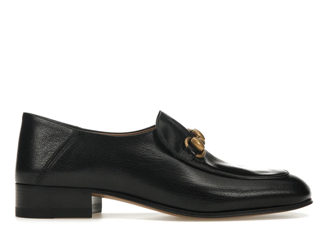 Gucci Horsebit Slip On Loafer Gold-Tone Black Leather (Women's)