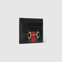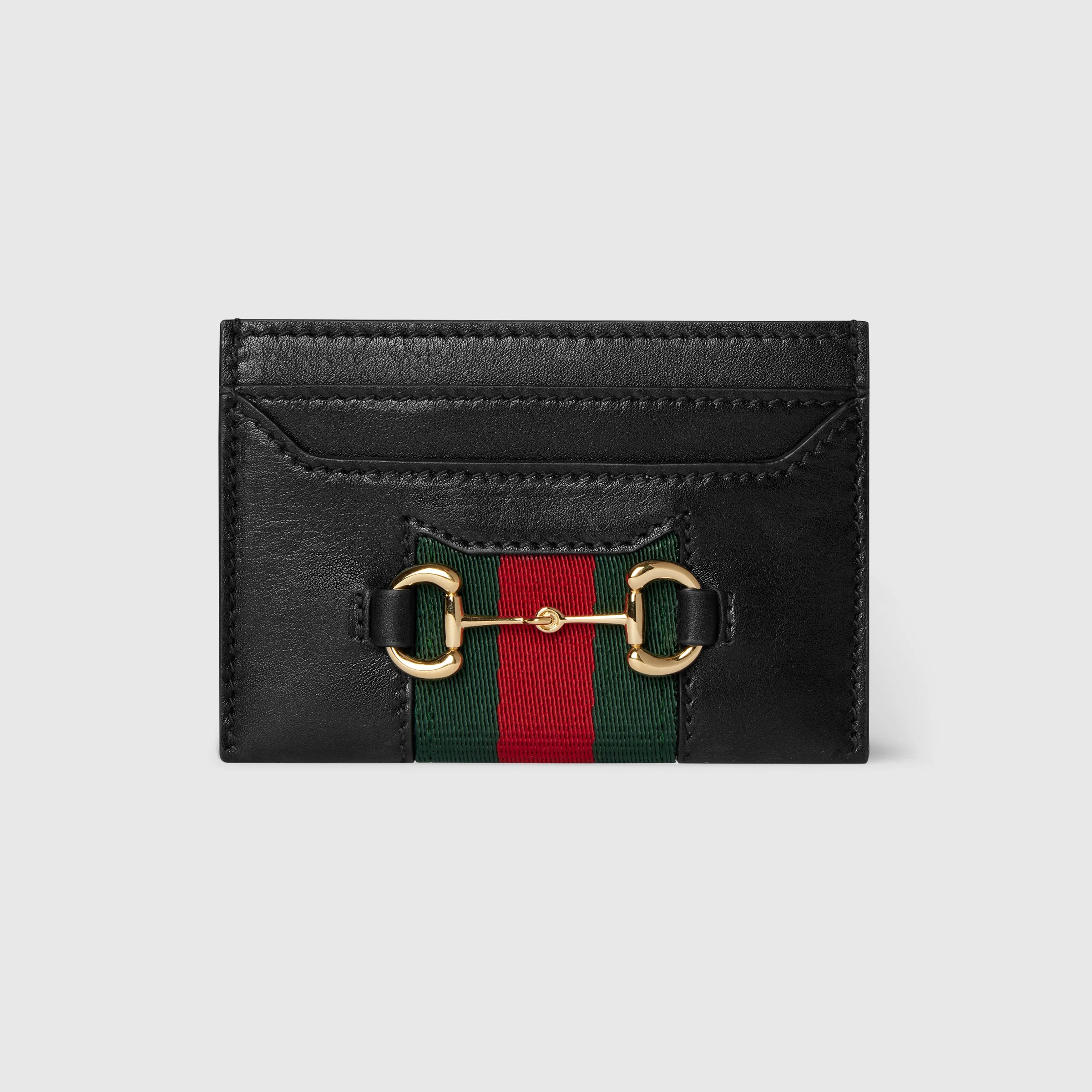 Introducing Spring Summer 2026. New small leather goods designs pay tribute to the Horsebit, pairing the emblematic hardware detail with a Web stripe for a touch of retro-inspired elegance. This style is crafted from soft leather. - Black soft refined leather - Gold-toned hardware - Black fabric lining - Horsebit, Web, and Made in Italy by Gucci logo - 3.9"W x 2.8"H - Weight: 1oz approximately - Made in Italy