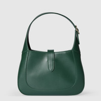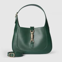 The Gucci Jackie 1961 with its signature piston closure and emblematic shape tells a story that spans eras. Crafted in sophisticated leather, this style exudes timeless elegance with a contemporary edge. - Green leather - Light gold-toned hardware - Green leather lining - Interior: 1 zip pocket with Gucci Crest zip puller - 7.1" handle drop - Additional leather strap with 20.5" drop - Piston closure - 10.8"W x 7.5"H x 1.6"D - Weight: 0.9lbs, approximately - Made in Italy - Fits iPhone Pro Max/Plus, Airpods, long wallet, and lipstick