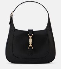 Crafted in Italy from leather. the Gucci Jackie 1961 features gold-tone hardware and an adjustable top handle. It comes with a detachable shoulder strap that showcases the brand's signature Web Stripe. Product Details - Material: leather - Lining: leather - Made in Italy - Designer color name: Black/Vrv - Item color: black - Hardware color: gold - Closure: push-lock fastening - Adjustable top handle, Detachable, adjustable shoulder strap - Internal details: internal zipped pocket - Item number: P01062417 Size & Fit - Height 18cm-7" - Max. width 28cm-11" - Max. depth 6cm-2.5" - Min. length shoulder strap 40cm-15.5" - Max. length shoulder strap 114cm-45"