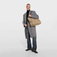Introducing Spring Summer 2026. This new Gucci Jackie tote is crafted from structured yet lightweight GG canvas, and reveals a lining with the Diamante motif taken from the archive. - Sand and dark brown GG canvas - Dark brown soft leather trim - Gold-toned hardware - Sand canvas lining with Diamante motif - "Made in Italy by Gucci" logo under the piston closure strap - Inside: 1 zip pocket - Leather top handle with 12.9" drop - Piston closure - 21.6"W x 14.5"H x 5.7"D - Weight: 1.6lbs, approximately - Made in Italy - Fits a laptop, iPad, A4 notebook, and small items