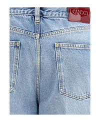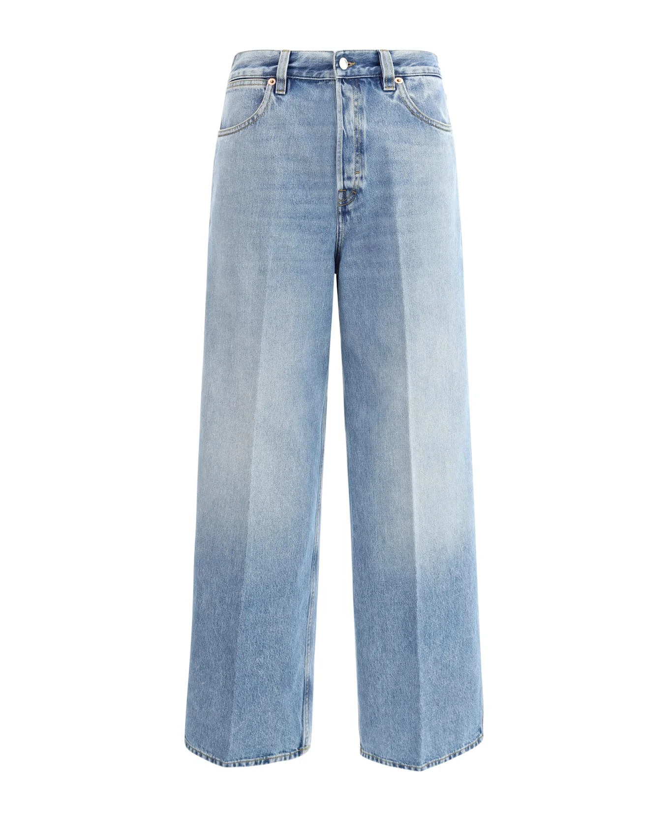 Gucci's wide leg jeans feature a faded effect and light wash that give a vintage yet modern allure. with a high waist and belt loops, they offer a comfortable and defined fit. the button and zipper closure ensures practicality, while the two front pockets, with coin pocket, and two square back pockets ensure functionality. contrast stitching completes the design with refined detail. Composition: 100% % Cotton Made in: Italy Color: DENIM Model number: 816971XDC7S4009
