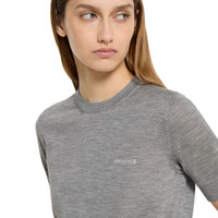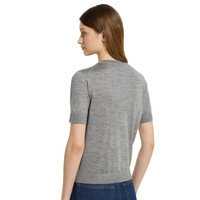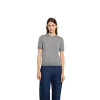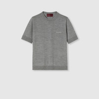 This crewneck top appears as part of the Pre-Fall 2025 collection in fine cashmere silk. A Gucci intarsia detail completes the design with a subtle logo detail. - Grey fine cashmere and silk - Gucci intarsia - Crewneck - Short sleeves - Rib trim - Made in Italy