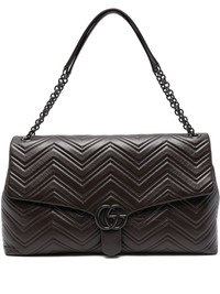 maxi GG Marmont shoulder bag Highlights - Brown - Matelasse chevron leather - Sliding chain shoulder straps - Double g clasp fastening - Main compartment - Internal zip pocket - This piece comes complete with a protective dust bag. Made in Italy Composition Outer: Leather 100% SIZE & FIT Model measurements Height 5 ft 9 in(1.76 m) Bust/Chest 31.49 in(80 cm) Hips 35.43 in(90 cm) Waist 23.62 in(60 cm) Measurement DEPTH 4.33 in(11 cm) HEIGHT 9.84 in(25 cm) WIDTH 18.5 in(47 cm)